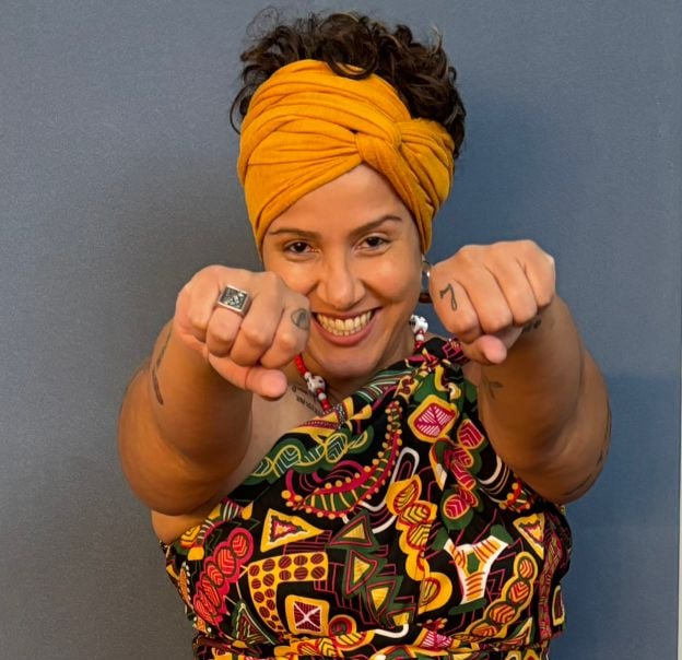 Adriane Calixto é mulher da população preta e LGBT e carrega a bandeira do samba como artista, linguagem máxima de seus ancestrais e de sua religião, o candomblé. Muito além de religião, para Adriane Calixto o candomblé traduz a mais genuína expressão cultural do povo brasileiro, onde nasceram o samba, a capoeira, a culinária, os costumes e os saberes populares, por meio desse desdobramento.