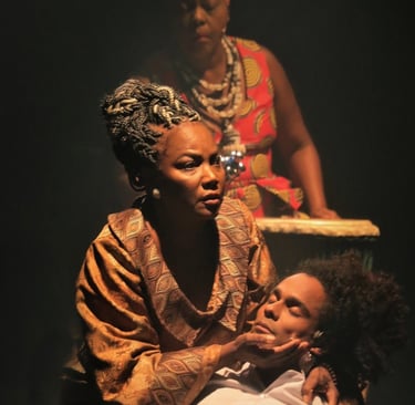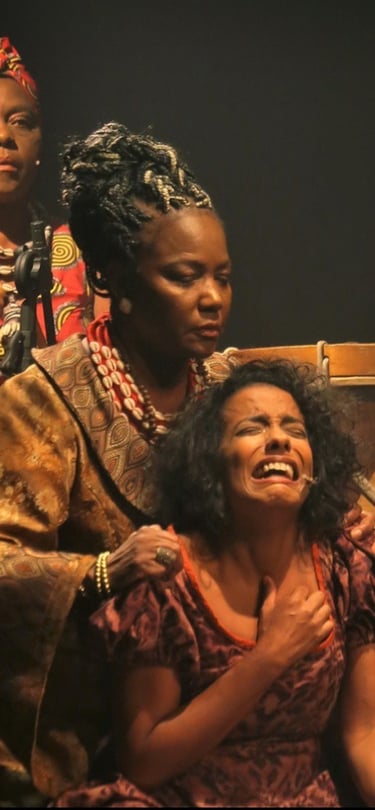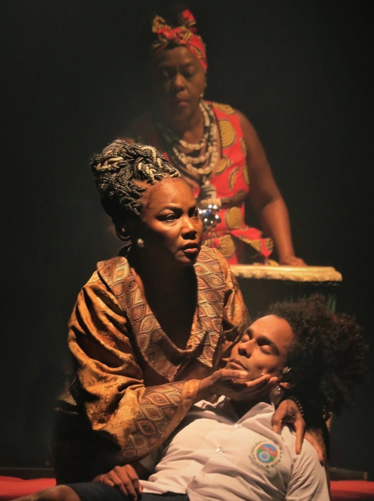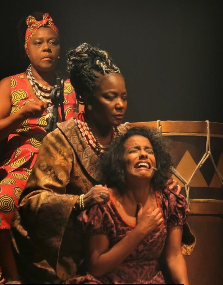 Cyda Moreno e as atrizes que a acompanham em cena carregam, no canto, na música e na palavra, essas vivências ancestrais que convergem para um mesmo destino trágico. Conectam o relato de Mahin ao lamento de mães cujos filhos foram vítimas do genocídio de jovens negros em curso no país, no tempo presente, e clamam pelo fim da violência policial e patriarcal. Erguem a voz em apelo, súplica e luta.