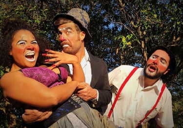 A Cia. desenvolve pesquisas e espetáculos que cruzam teatro, circo, mágica, contação de histórias e palhaçaria, com uma trajetória marcada por criações autorais, parcerias circenses e produções presenciais e audiovisuais.